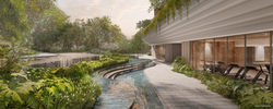 Spring of Wellness. Meander through serene gardens, winding trails, courtyards, and flowing water features that seamlessly blend into a tapestry of wellness spaces. From the gym, look out to a stunning view of the terrace falls, and let the beauty of nature enrich your journey to well-being.